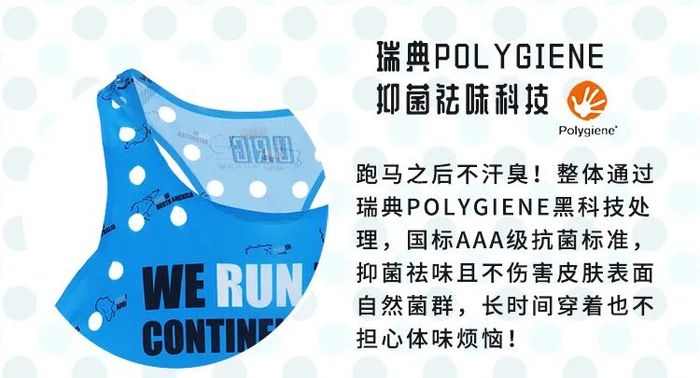 这里需要跟大家厘清一个概念,Polygiene®是一种来自瑞典的黑科技助剂,通过银离子添加于相关面料从而阻止面料表面的细菌生长(汗臭等异味来源),而且不影响人体皮肤的自然菌群。简单来说,就是Polygiene®能抑菌杀菌。