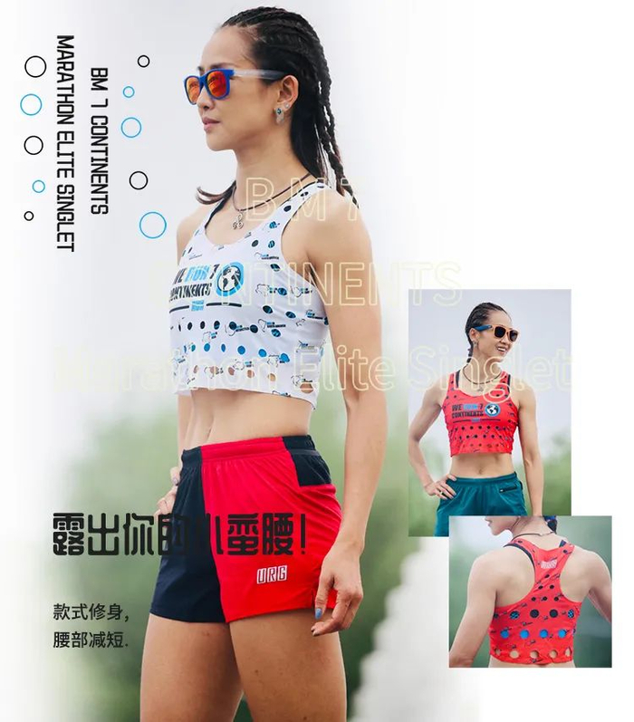 考虑到跑圈小仙女不仅都有好身材,还要大胆露出来!因此我们还特别推出女款BM 7 CONTINENTS Marathon Elite Singlet露腰精英竞速无缝背心,女子BM款更修身,腰部进一步缩短,露出您的小蛮腰!
