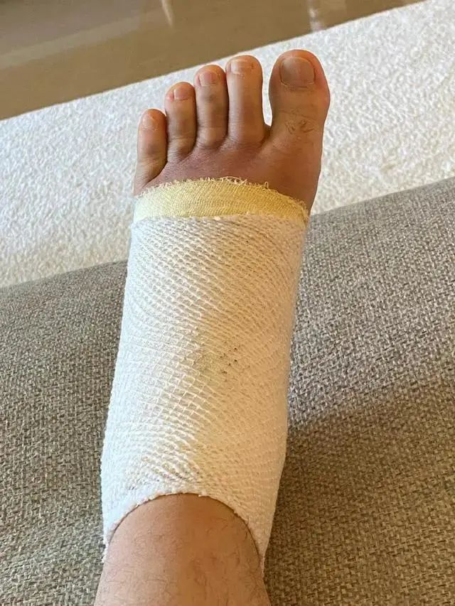 从照片上看庾澄庆扭伤的是左脚,其中右腿膝盖部也缠着纱布,看起来伤得不轻,他为此还拄上了双拐。都说伤筋动骨一百天,庾澄庆已经56岁了,恢复起来肯定比年轻人慢一些,不过他本人很乐观,拍照时还对镜头吐舌卖萌,心情甚好。