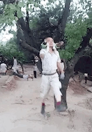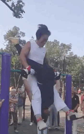 刚才还形容枯槁的大爷,突然螺旋翻转360°。