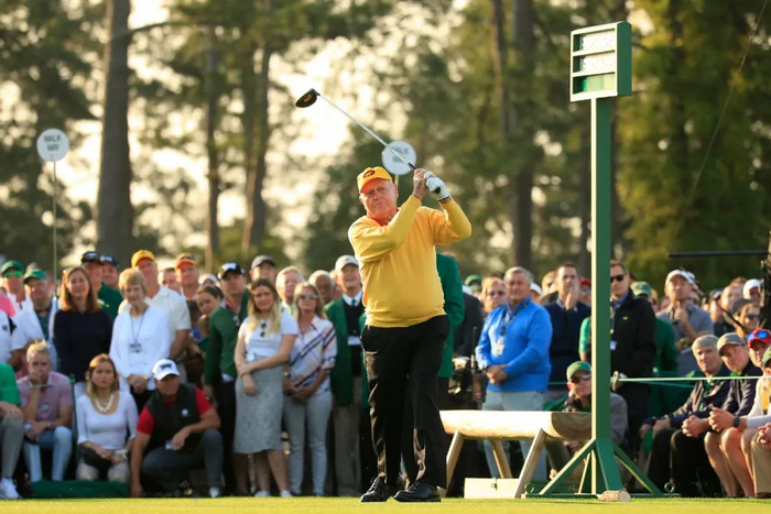 劳力士代言人兼荣誉开球嘉宾杰克 · 尼克劳斯击球,象征第 83 届美国大师赛正式揭幕。©Augusta National 2019