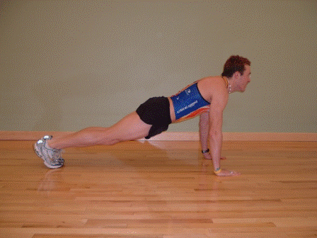 注意头部一直朝前看,不要抬臀,身体保持直线,肘部是向后弯曲,不要侧弯。