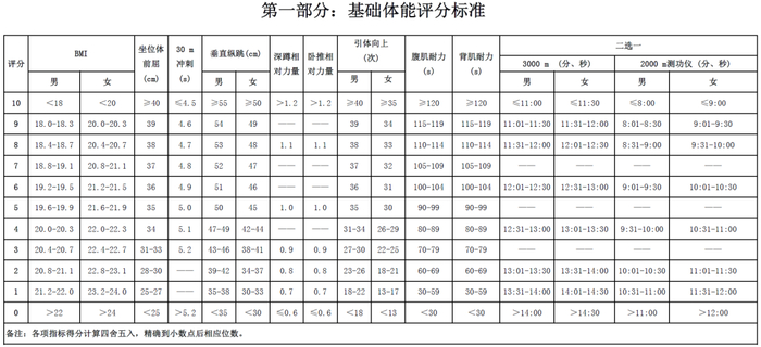 笔者也在体育总局的官网找到了《国家队体能达标测试评分标准(2020年2月版)》。