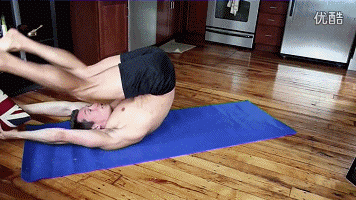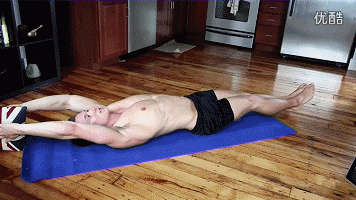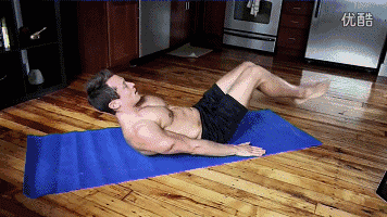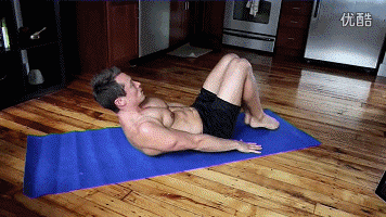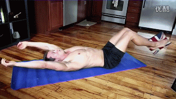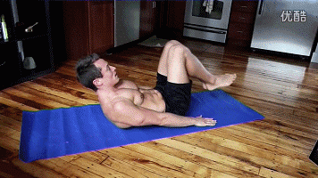 起身方法不仅要向上“卷缩”,而且在卷腹的同时身体向两侧扭转,使深层腹肌和腹斜肌得到深度刺激。