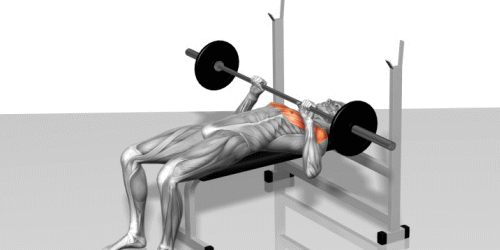 杠铃放在胸部乳头以上1厘米左右。吸气,以胸大肌的力量持铃向上推起至两臂伸直,并使胸腔挺起,胸大肌充分收缩,再呼气,双手慢慢回到原位。