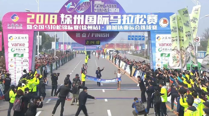 2018年徐州国际马拉松是亚运会选拔赛,董国建、多布杰分别跑出2小时14分18秒、2小时14分31秒,双双打破赛会纪录。