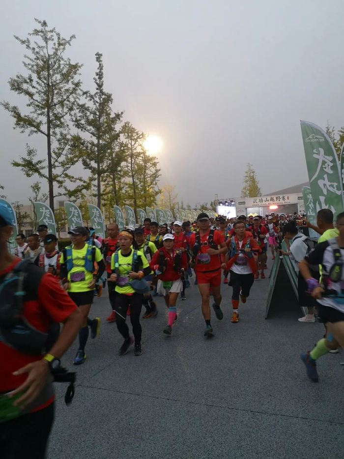 起点组织有序,凌晨五点多的山里还没有天亮,不过存包还是挺快的。还有工作人员指示:“存包在这边,厕所在那边”这样温馨提示对我来说很友好。