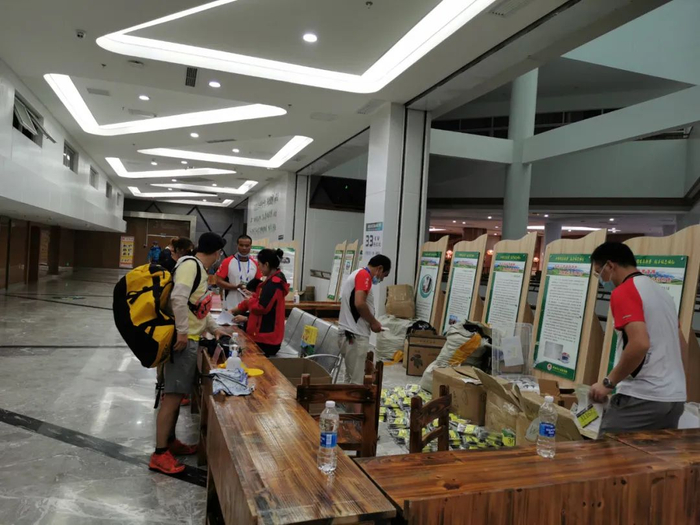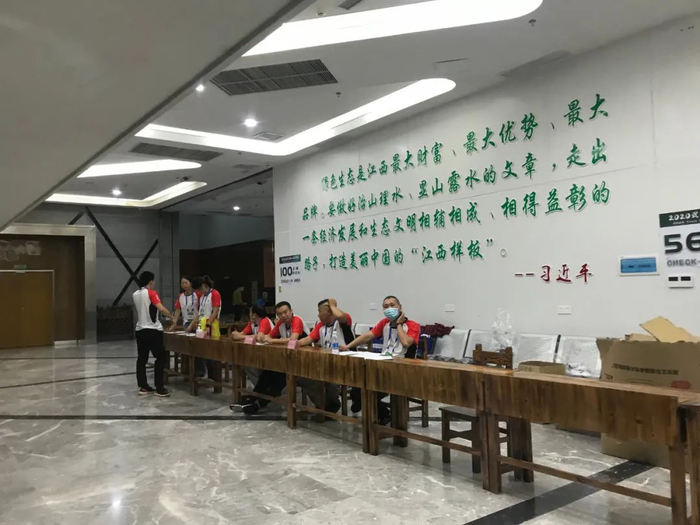"领物当天下着小雨,但在旅游中心室内,指引牌都很清晰,地面也有指引路标,整个流程都顺畅。有赛前展会和纪念品。领物前进行了健康码登记,体温测量。