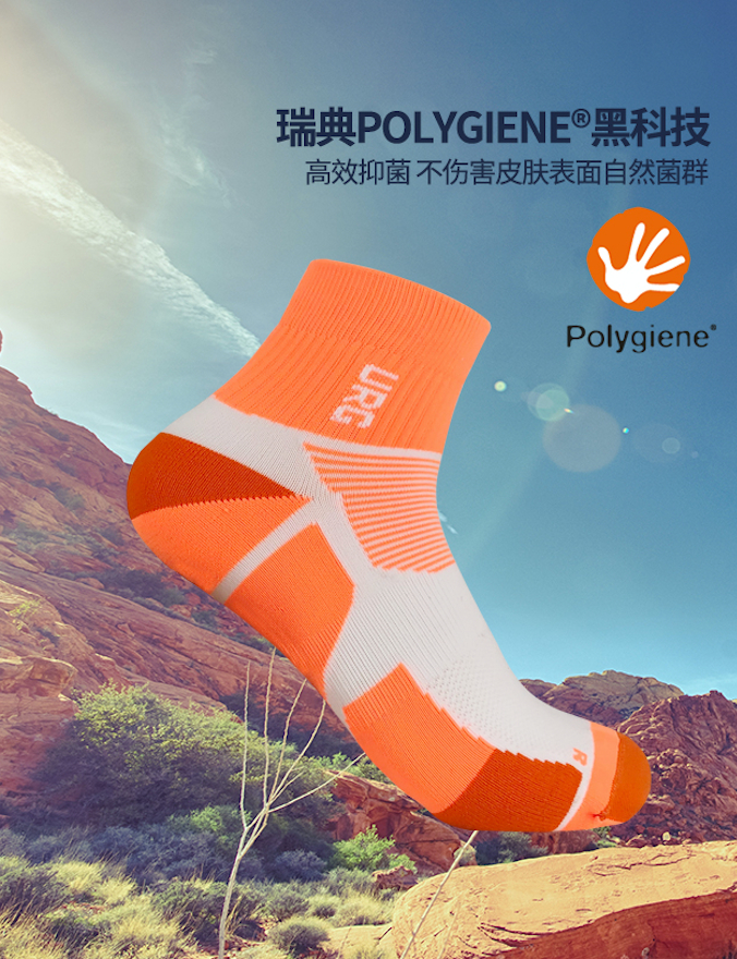 瑞典Polygiene®黑科技后处理,已经通过了通过国标AAA级抑菌测试,水洗50次依然保持高级别抑菌标准,长时间的穿着也可不用担心出汗脚臭。
