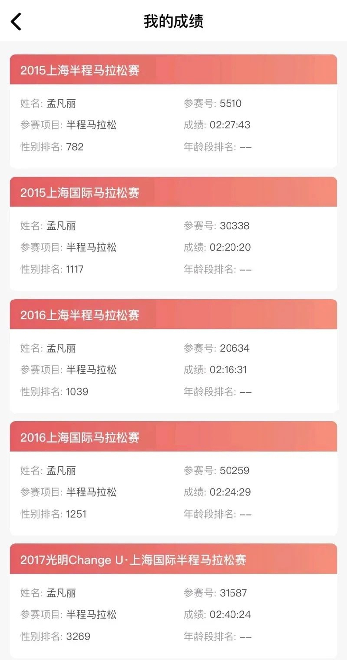 半马、全马、超马、越野都参加过;虽然现在跑步频率低,但是上海半马一定每年参加。