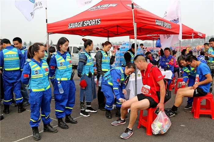 组委会在起点、赛道沿途自5公里开始每5公里及终点设立固定医疗站,每5公里设置固定医疗点,每1公里设置移动AED救援服务。