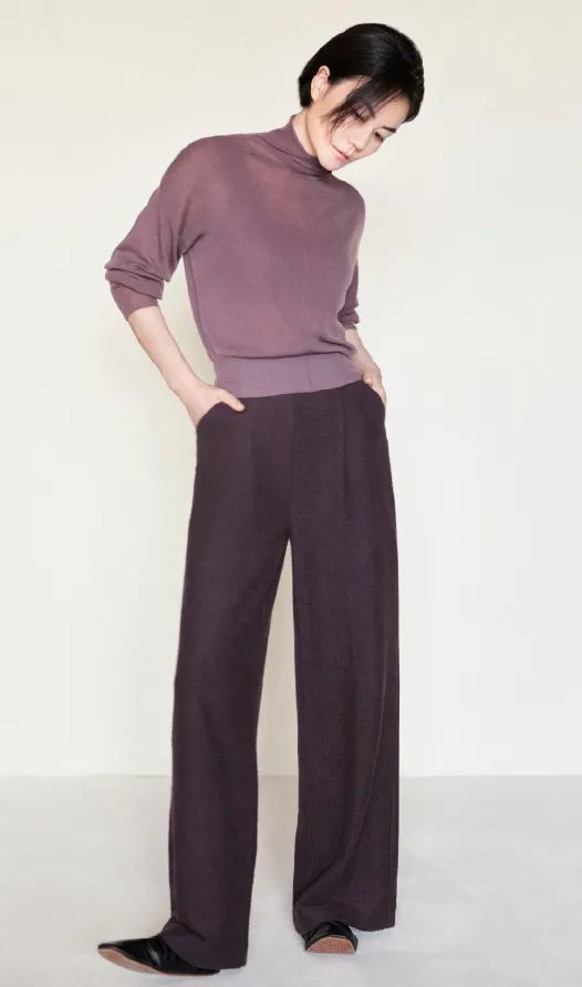 前阵子,王菲代言内衣广告。官宣大片中,王菲一身大气裤装出镜,阔腿裤搭配针织衫,身材比例尽显,落落大方。