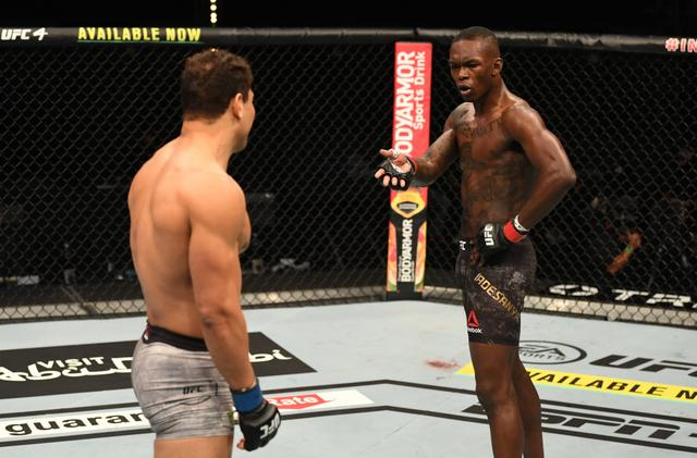 为了扭转局面,科斯塔试图打内线,但阿迪萨亚再次占据优势,用一记左勾拳截住了巴西人。魁梧的挑战者摔倒在地板上,绝望地试图避开那些像雨点般落下来的肘部和拳头的攻击,比赛就此结束。阿迪萨亚展示了他杀人诛心的口才:“我还是不喜欢他。我不认识他,我不希望他死,他还活着,我让他活着。这就是我们从事的运动,这就是暴力,我告诉你们会很暴力,我说了,会很暴力,会很快结束,这就是我所做的。”