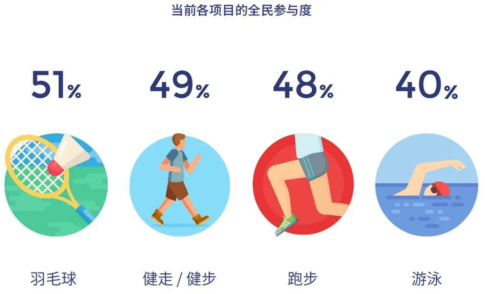 针对运动参与场景,报告显示,体育场馆仍不是经常性锻炼人群的高频使用场景,体育综合体在体育锻炼功能上的使用率仅为19%。希望相关方面需要主动探索新科技应用、精细化运营,提升场馆吸引力。