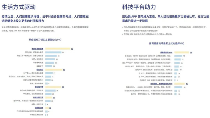 上述这些数据摘录自中国体育用品业联合会与尼尔森联合发布的《2020年大众健身行为和消费研究报告》,精准揭示了疫情期间广大群众居家健身的用户画像和后疫情时代我国体育产业发展的新趋势。