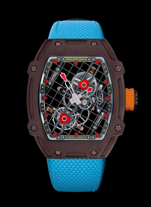 瑞士设计师仅制作了50款专属腕表,这款腕表是为了纪念他们与纳达尔合作十周年,他们将其命名为RM 27-04陀飞轮Rafael纳达尔。在理查德·米勒的网站上,这款手表被描述为“在很多方面都很独特”,可以承受高达12000Gs。