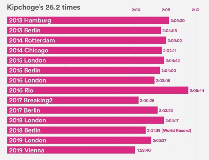 这样一来,10月4日的伦敦马拉松,只要基普乔格正常发挥,夺冠已经没有悬念。在马拉松赛场上,他已经保持者12场11胜的传奇战绩,以及两场破2计划中,跑出的2:00:05,和1:59:40。