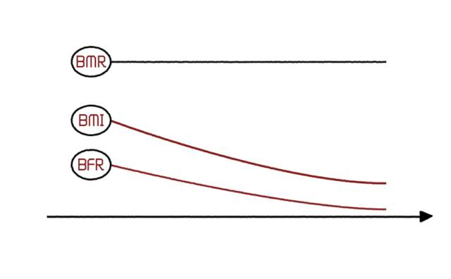 经过了暂时的增重期之后,人体营养吸收、基础代谢、运动机能都会进入一个相对稳定的状态,在每日的消耗总量略大于摄入量的前提下,无论是BMI指数还是体脂率都会迎来持续性下降,减肥初见成效。