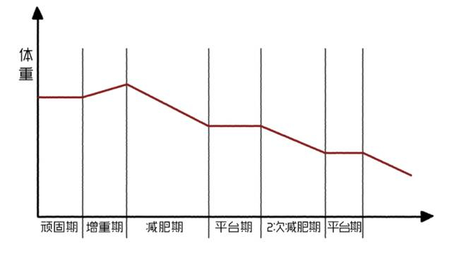 当我们的减肥持续了一段时间之后,身体会产生适应现象,热量吸收利用率接近饱和、基础代谢率降低,同时运动机能也基本完成了第一次的提升。于是能量吸收与消耗又达到了一个新的平衡状态,体重相对稳定的维持在某个数值、不再下降,甚至会因为外部因素影响而有所上升。这种情况就被称作平台期,也可以说是减肥停滞期。