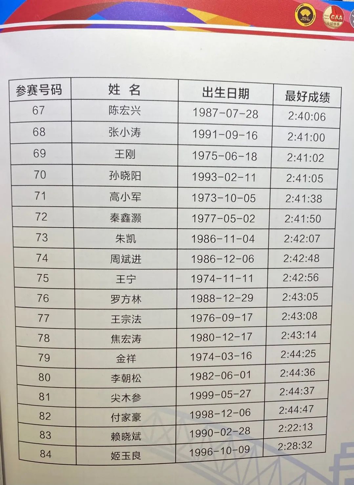 以及不在名单中的2020年厦马以2小时13分50秒,夺得国内冠军的杨定宏,也参加此次比赛。