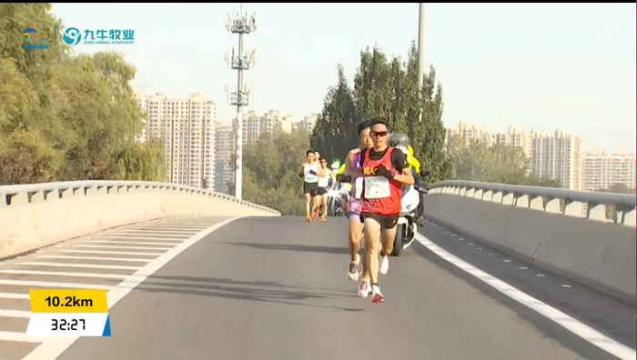 10公里用时31分30秒左右,均速3分09秒,此时第一集团仅剩下杨定宏、管油胜、杨成祥(青海选手,PB225),吴向东、尹顺金、李伟落后5米左右: