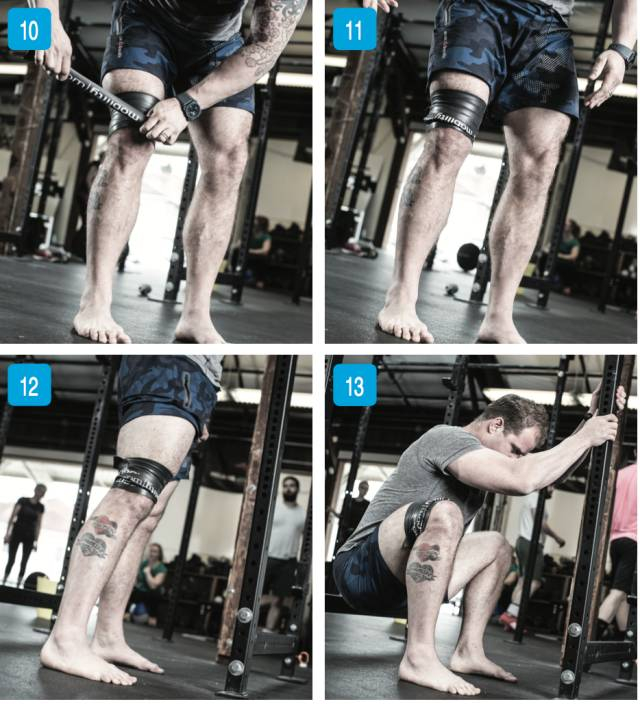 方法:在缠绕压缩后,要通过下蹲练习,活动关节、腘绳肌和股四头肌。可以使用支撑物,以完成规范到位的深蹲动作。