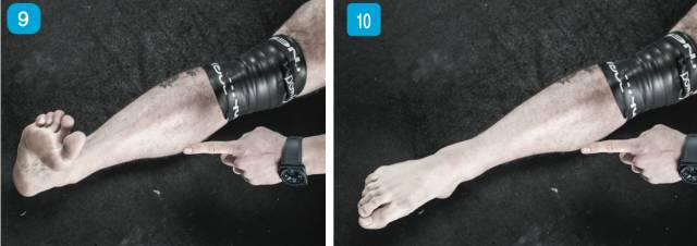 按照下图所示方法缠绕脚踝,通过足背屈伸动作活动踝部组织,你会感觉到缠绕带对组织的滑动面发生作用。