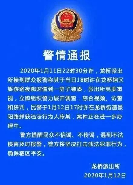 2020年1月11日,受害人在凤凰山公园附近夜跑。一男子一抱抱住受害人猥亵,随后受害人拼命挣扎并大喊并趁男子有些精神不集中时逃走,随后报警。