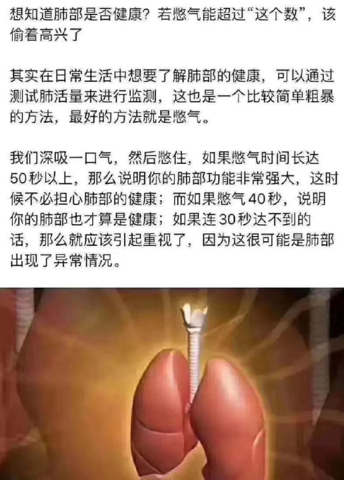 在陶老师的配图中,他指出,日常生活想要了解肺部的健康,可以通过测试肺活量来监测,这也是一个比较简单粗暴的方法,最直接的操作就是憋气。