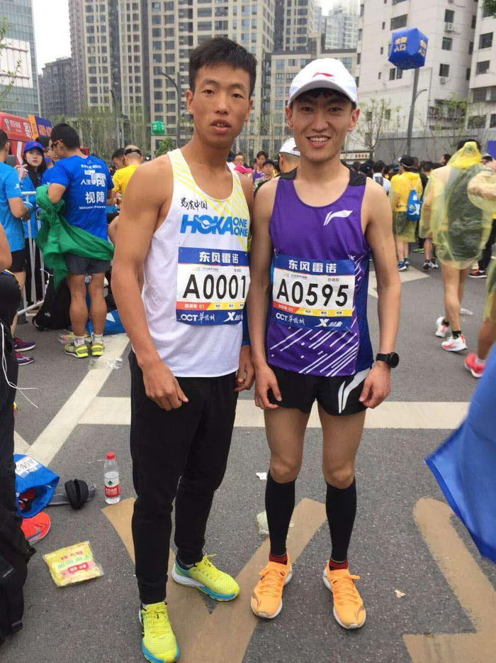 4月武汉马拉松,赛道上因为肌肉拉伤,他跑了258。尽管成绩没有突破,让他开心的是赛道上结识了大神管油胜。