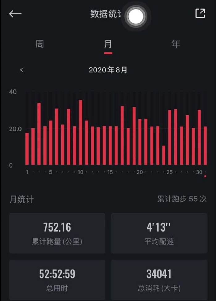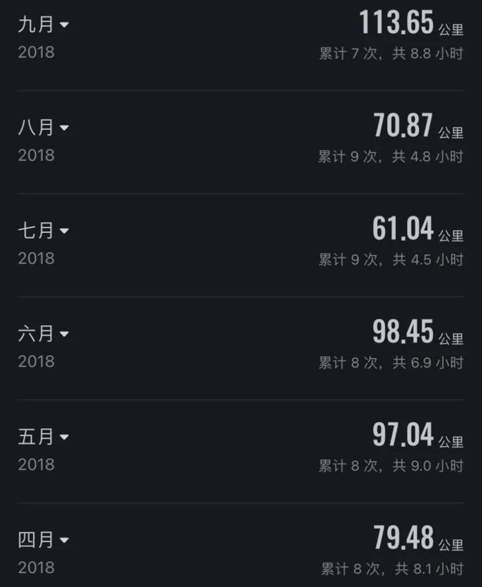 除了没有标准跑道和一起训练的队友,规律系统的训练节奏反而保持了下来。这段时间,他的月跑量也维持到了500多公里,有了马拉松运动员系统训练的样子。