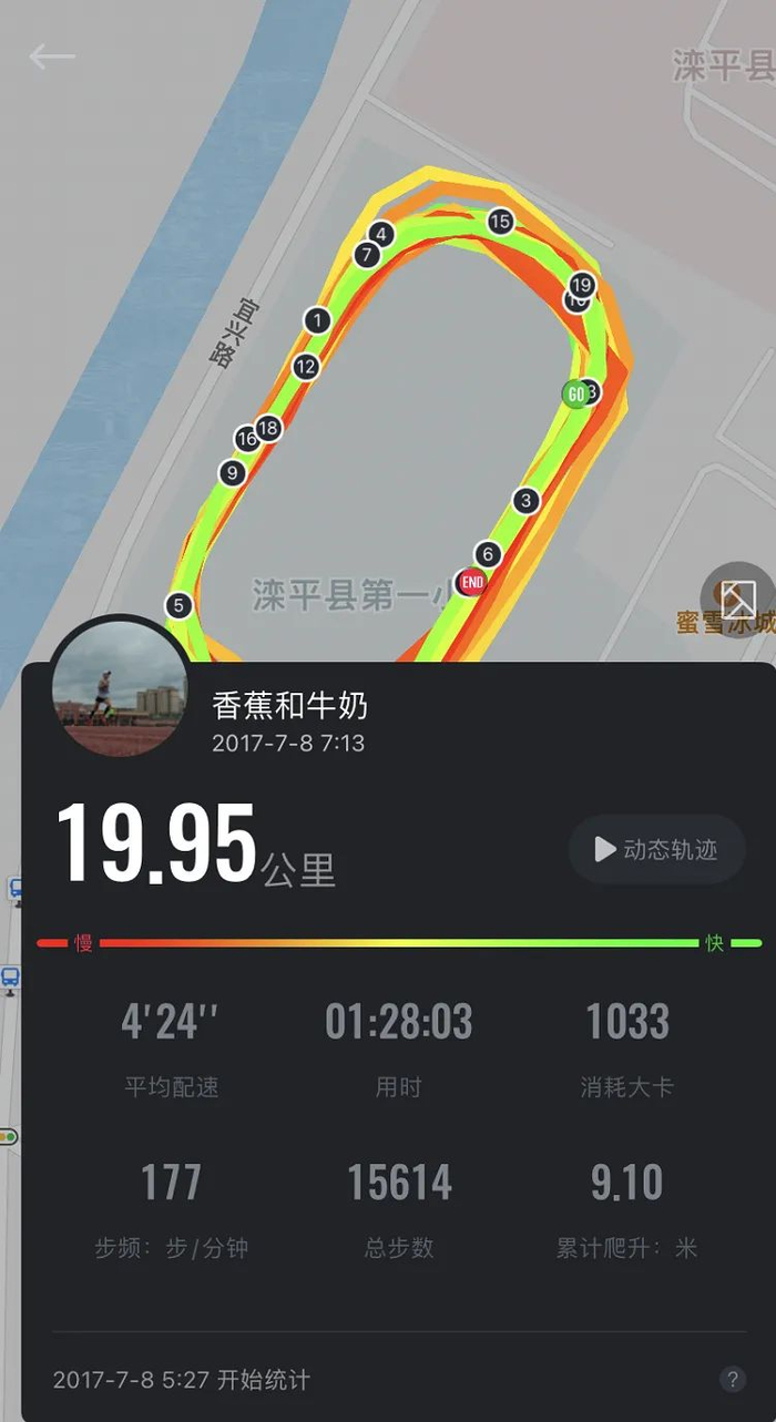 有人告诉孙晓阳,一个半马是绕着操场52圈。在7月的一个周末,他在操场正着跑了26圈,反着跑了26圈,等心里算够了圈数,一停软件,19.95公里,1小时28分。他说,那应该算是头一次半程马拉松。