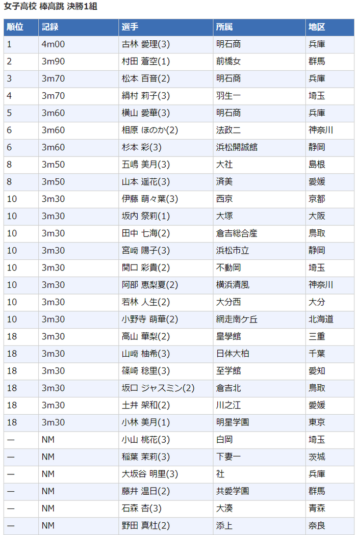 高中女子撑竿跳高