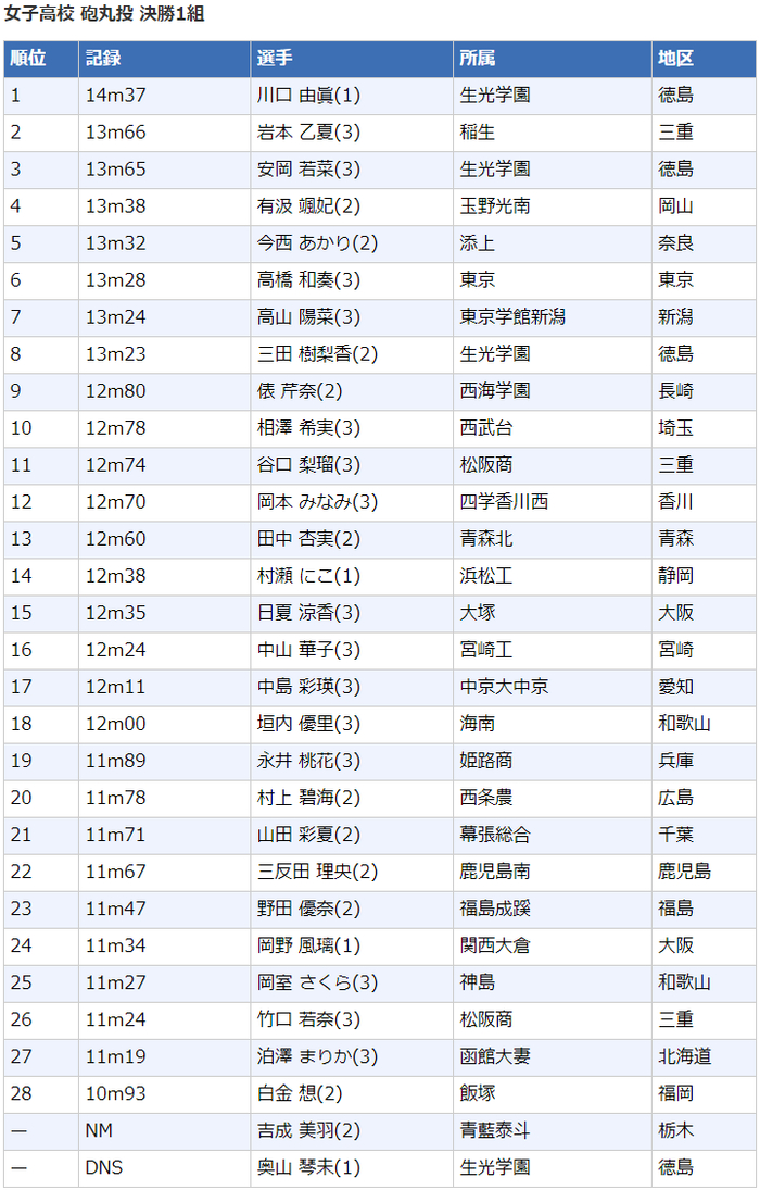 高中女子铅球(4公斤)