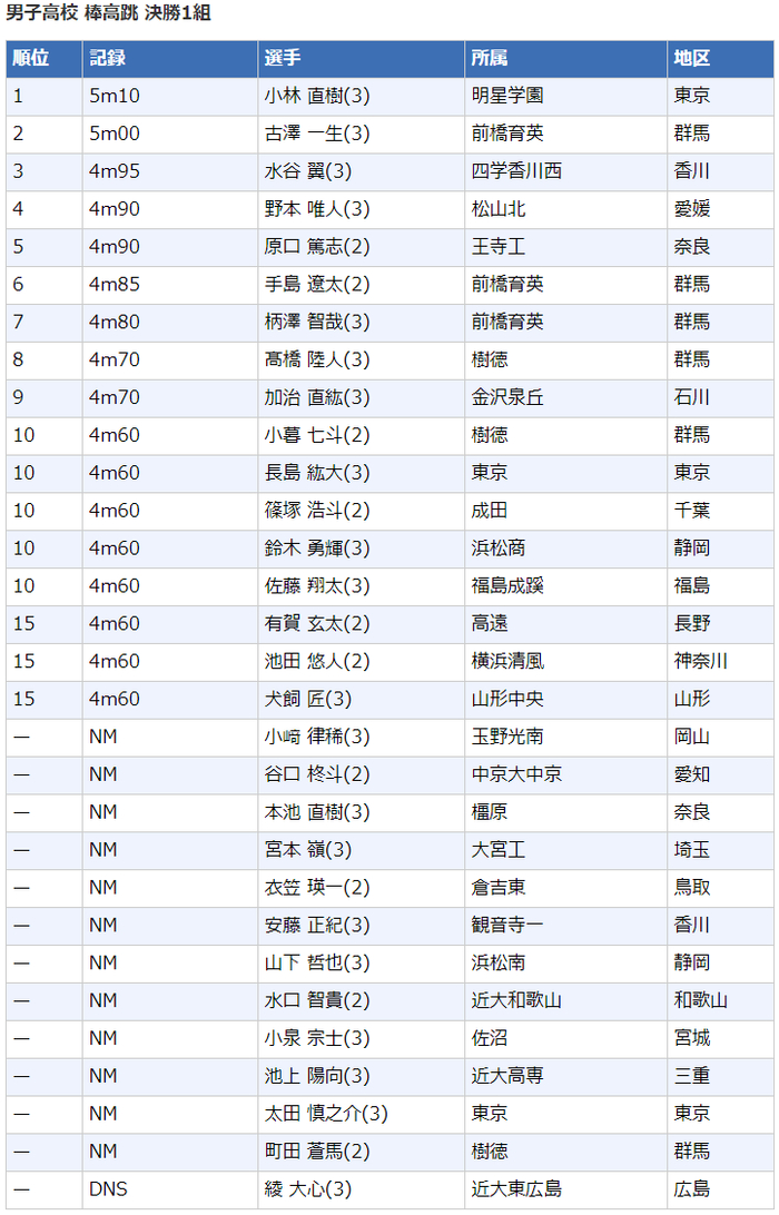 高中男子撑竿跳高