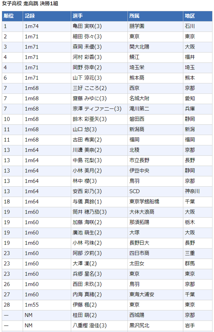 高中女子跳高
