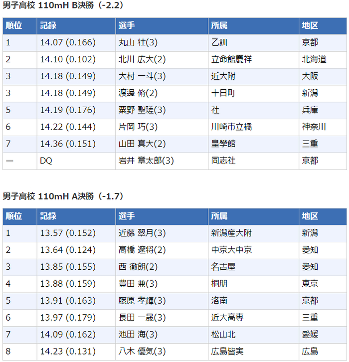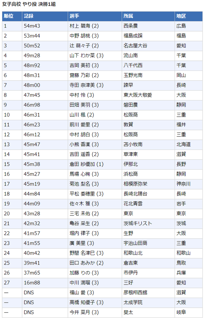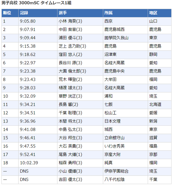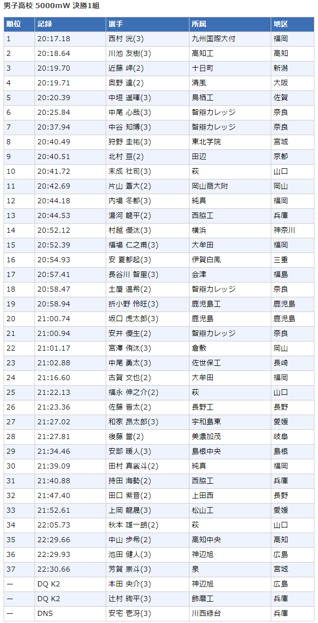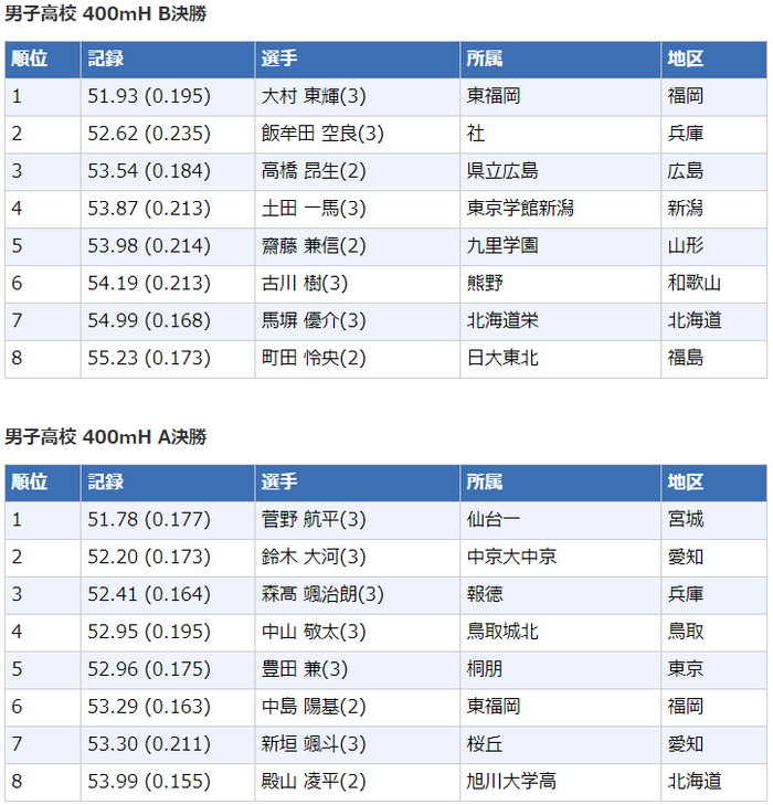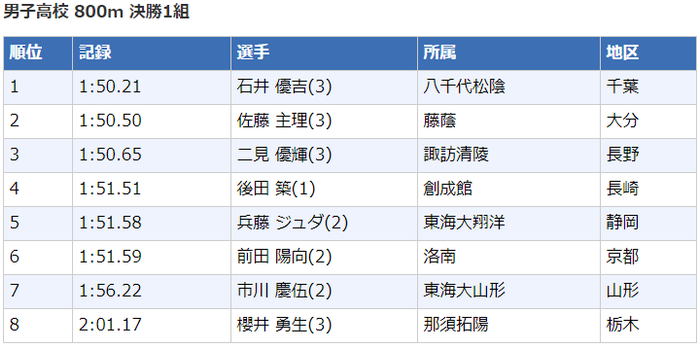 2020日本高中生田径锦标赛┇成绩