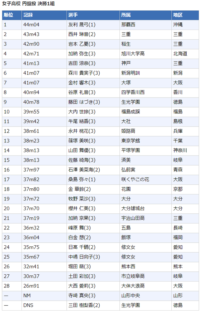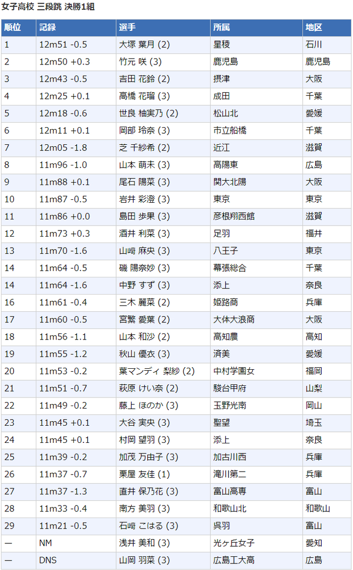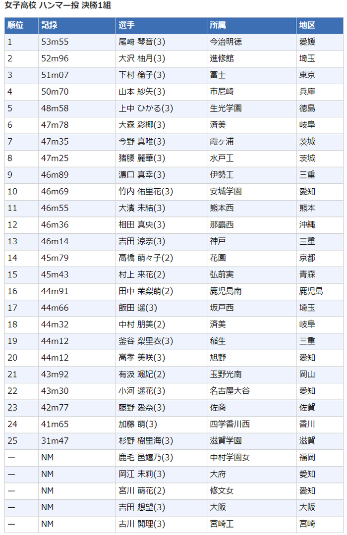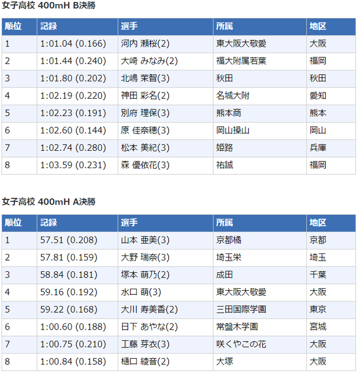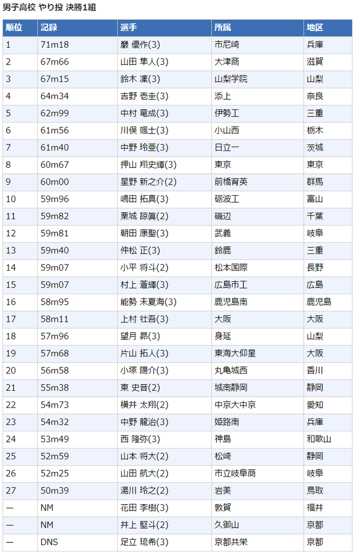 2020日本高中生田径锦标赛┇成绩
