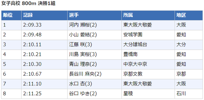 高中女子800米