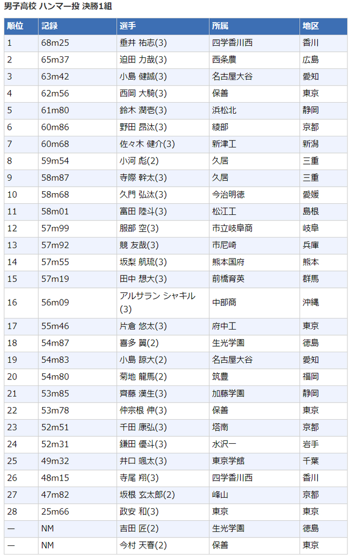 高中男子链球(6公斤)