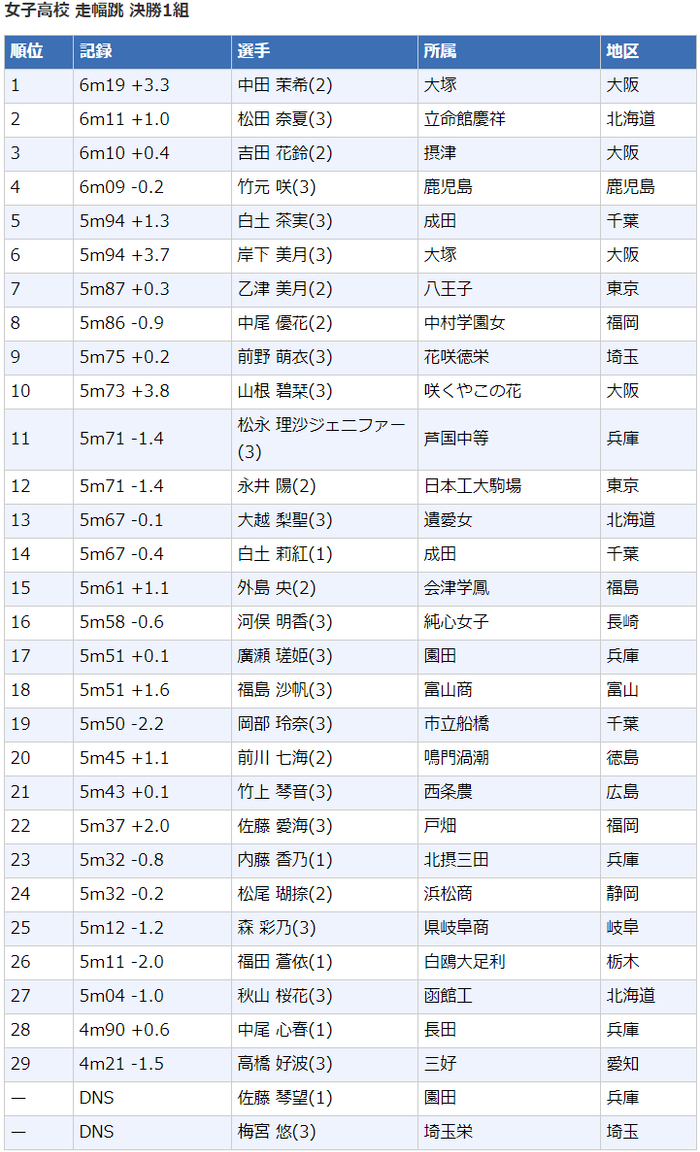 高中女子跳远