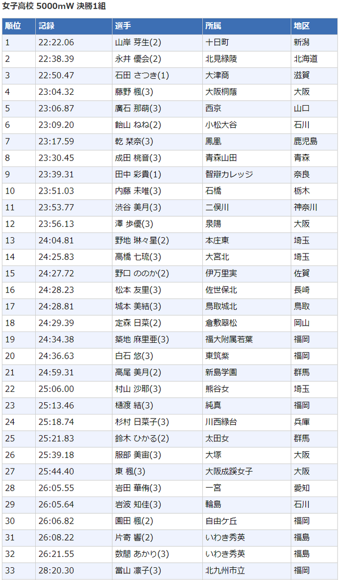 高中女子5000米竞走
