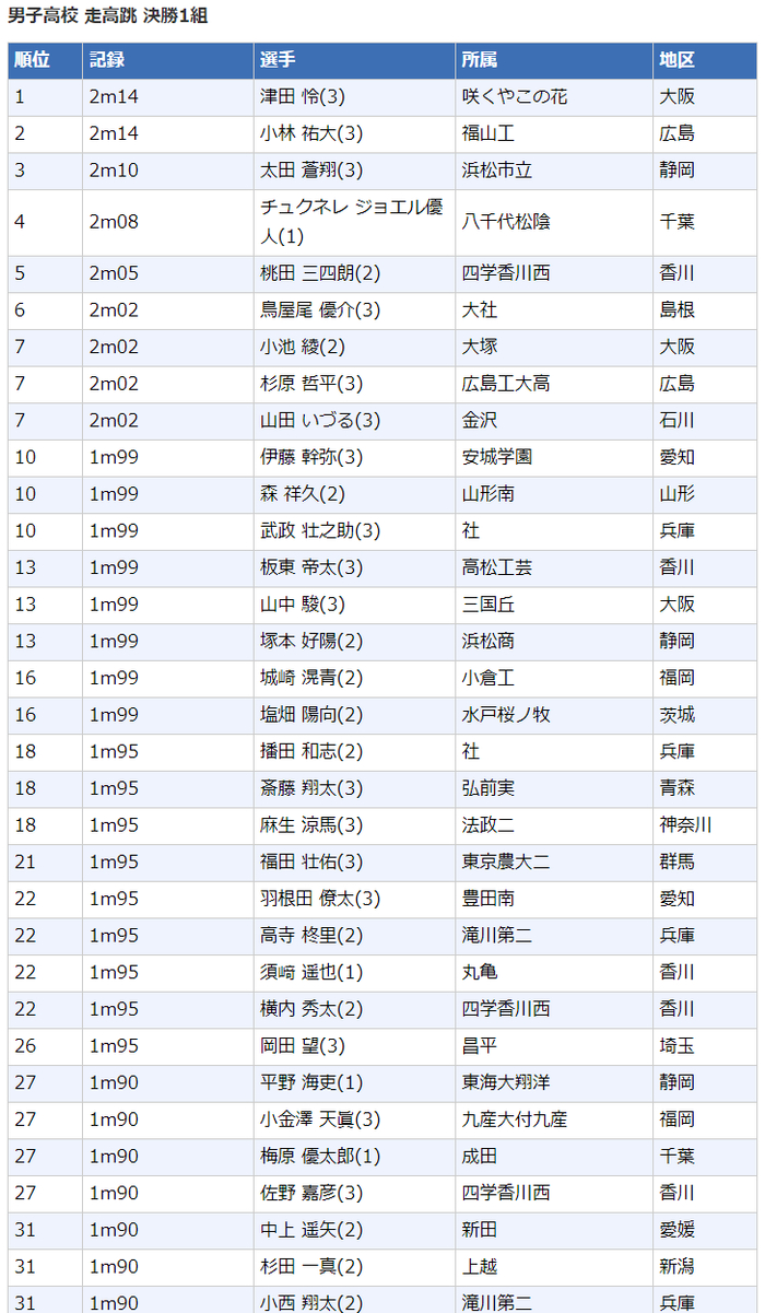 高中男子跳高