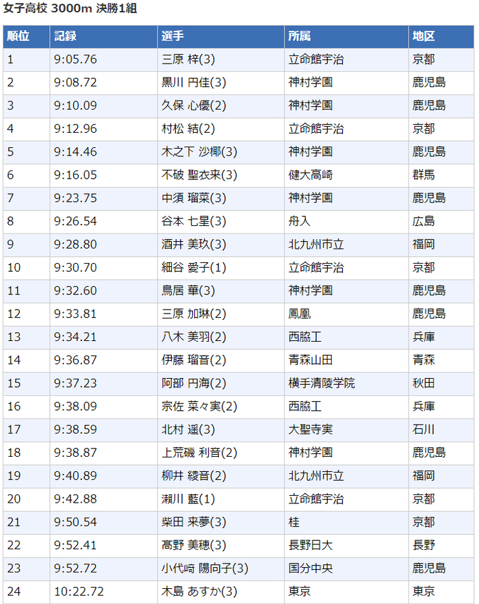 高中女子3000米