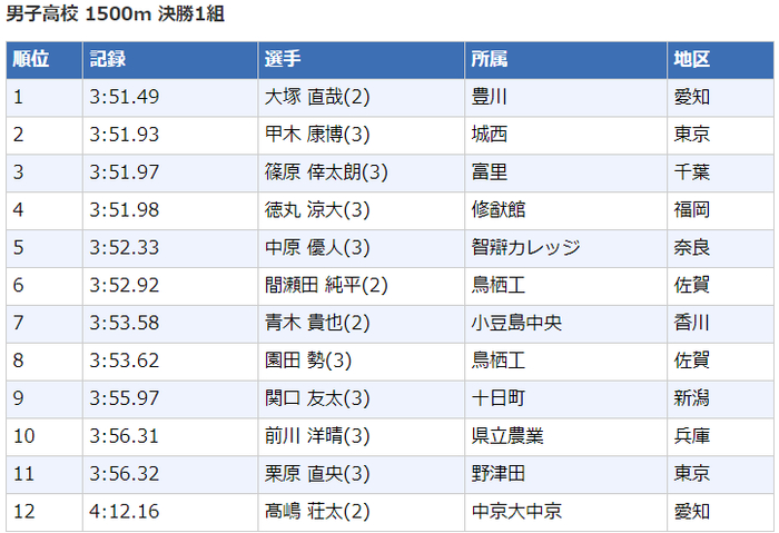高中男子1500米