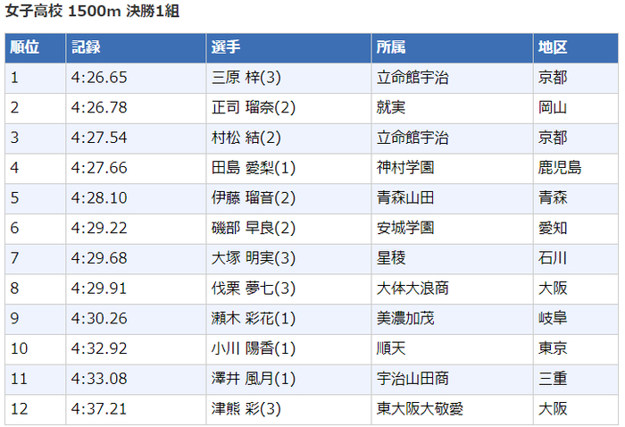 高中女子1500米