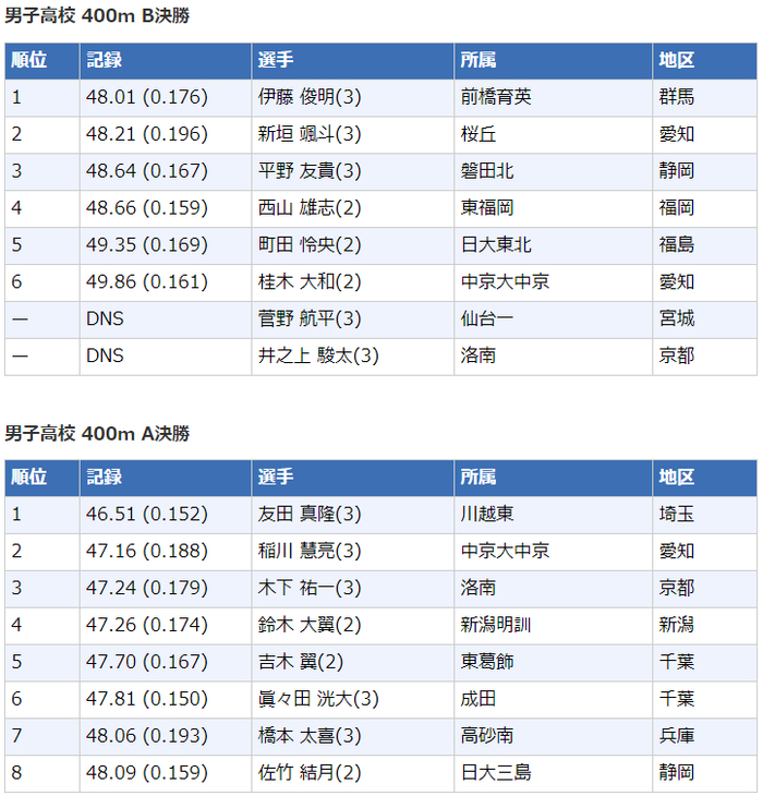 高中男子400米
