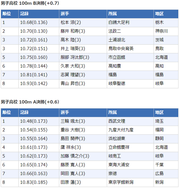 高中男子100米