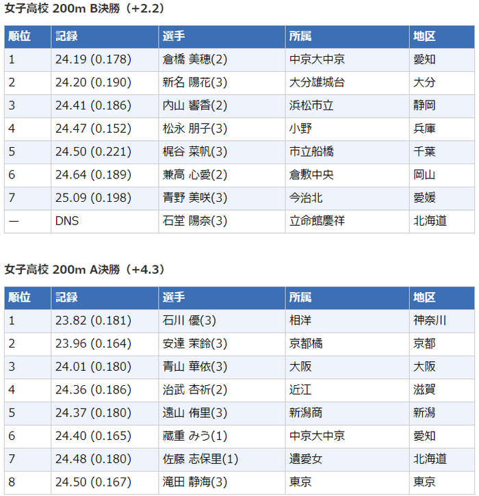 高中女子200米