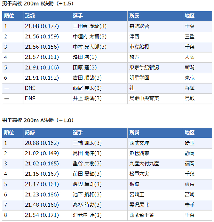 高中男子200米